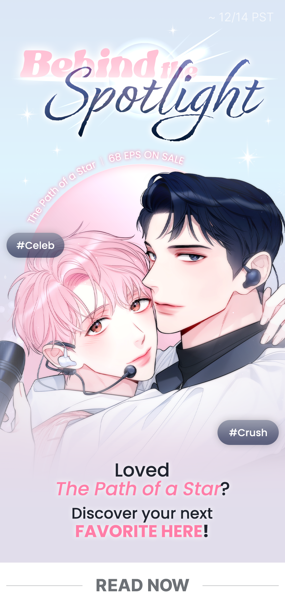 Former rising star, current no-name actor Jang Seungmin’s lucked out. Not only has he nabbed a role in a TV show, but he’s also getting to work with the biggest star in the country, Ha Hyunje. Charismatic, handsome, but also a little bit of a jerk, Hyunje has a magnetic presence that draws everyone in. Before Seungmin knows it, he’s become yet another Ha Hyunje fanboy. Seungmin’s satisfied with keeping a safe distance between himself and Hyunje, but...why is Hyunje so interested in Seungmin? More importantly, what does "the incident" that happened 7 years ago have to do with anything?